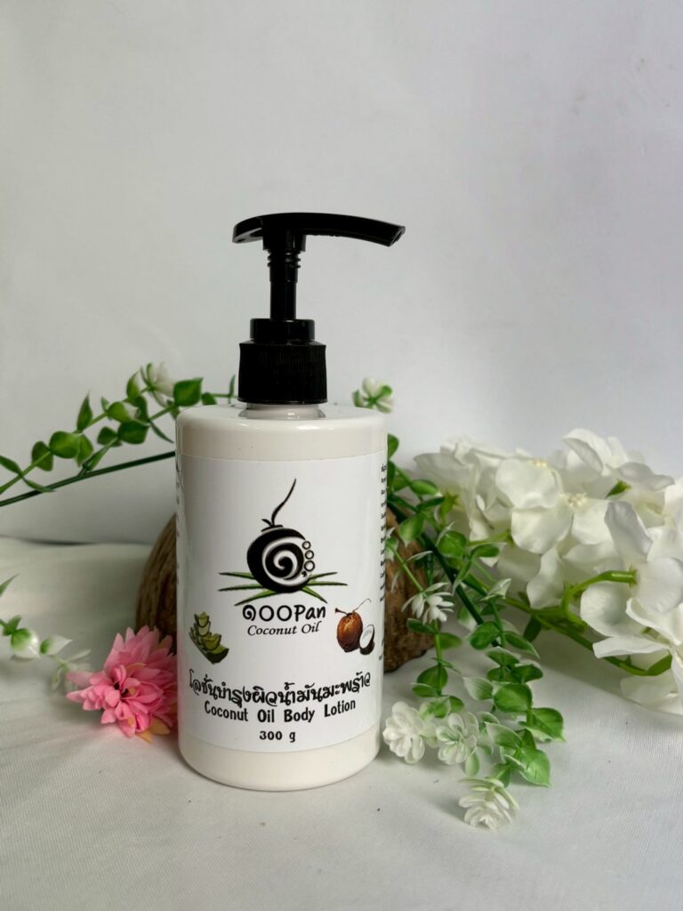 - น้ำมันมะพร้าวบริสุทธิ์ (Virgin Coconut Oil): บำรุงผิวให้ชุ่มชื้น ลดความแห้งกร้าน